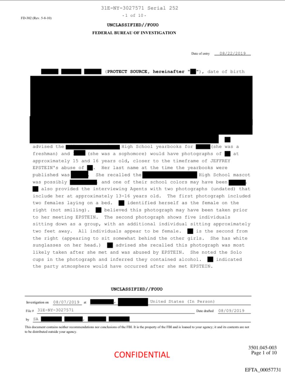 Агенти ФБР чотири рази опитували цю жінку у 2019 році. Однак кримінальної справи відкрито не було, з чого випливає, що свідчення жінки не були визнані достовірними. Контакти ФБР із нею також припинилися.