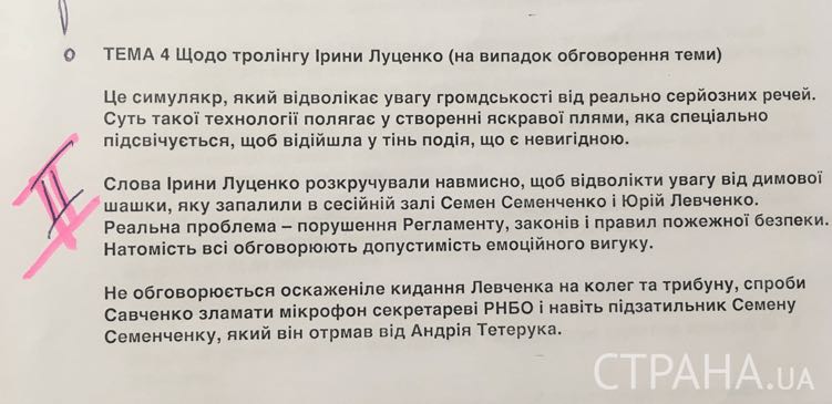 Напомним, "Страна" не первый раз публикует рекомендации от Банковой. Их готовят для депутатов фракции Блока Петра Порошенко, а также лояльных к президенту лидеров общественного мнения (ЛОМов), экспертов и политологов, принимающих участие в телепрограммах и комментирующие тему в СМИ и соцсетях.