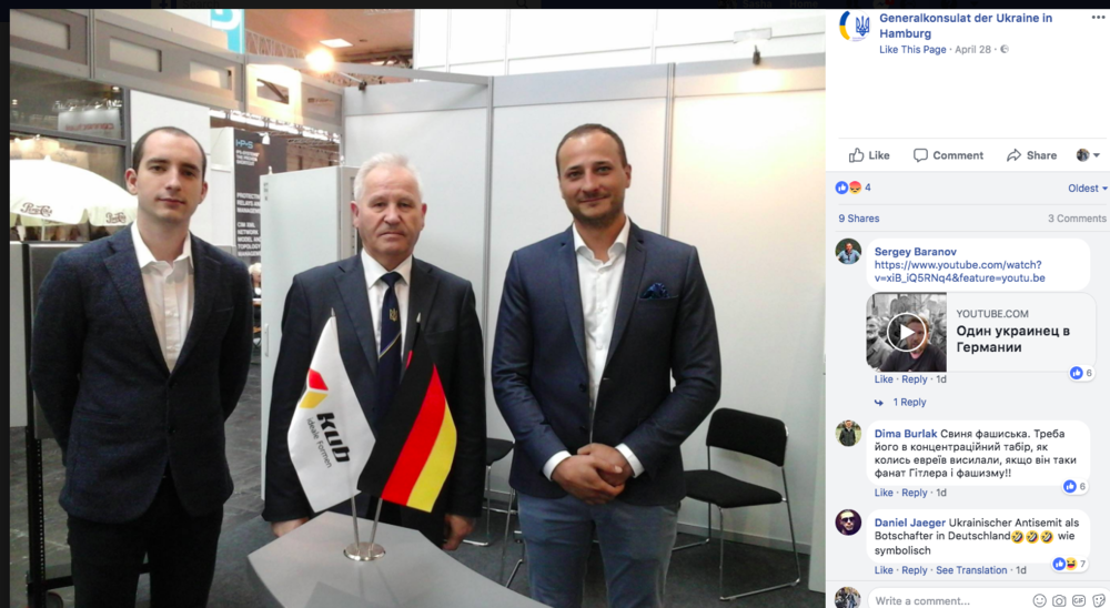 Зато страницу диппредставительства в "Фейсбуке" атаковали гневными постами: "Это позор!!!", "Генконсул антисемит и открытый сторонник нацизма", "Свиня фашистська. Треба його в концентраційний табір, як колись евреїв висилали, якщо він таки фанат Гітлера і фашизму!!"