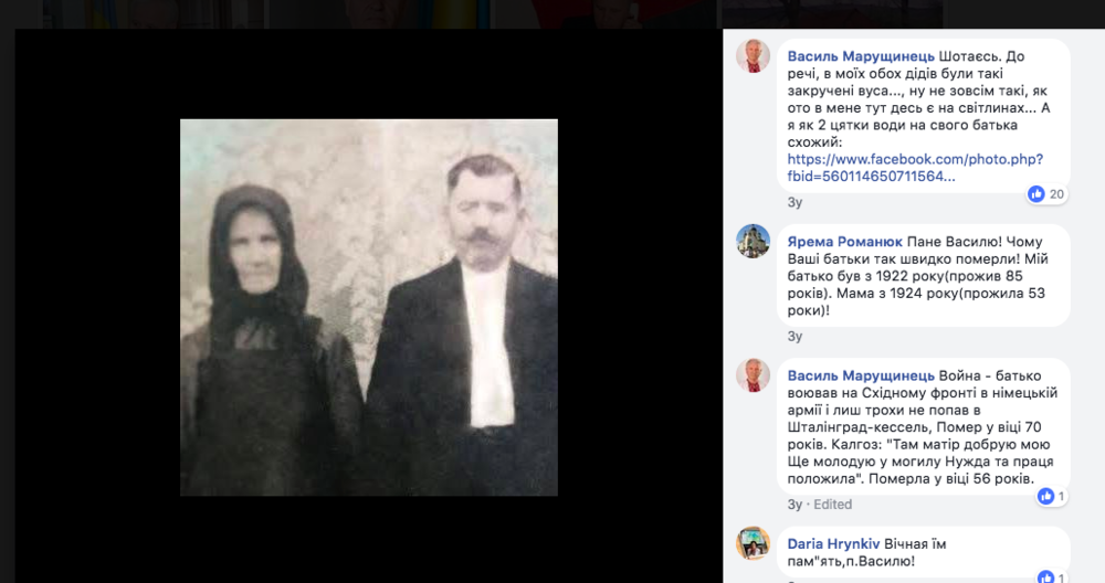 Кстати, об отце Марушинец несколько раз упоминает в своем "Фейсбуке", в комментариях под фото. По его словам, тот воевал "в немецкой армии и умер в возрасте 70 лет", а мать работала в колхозе и умерла рано, в 56 лет.