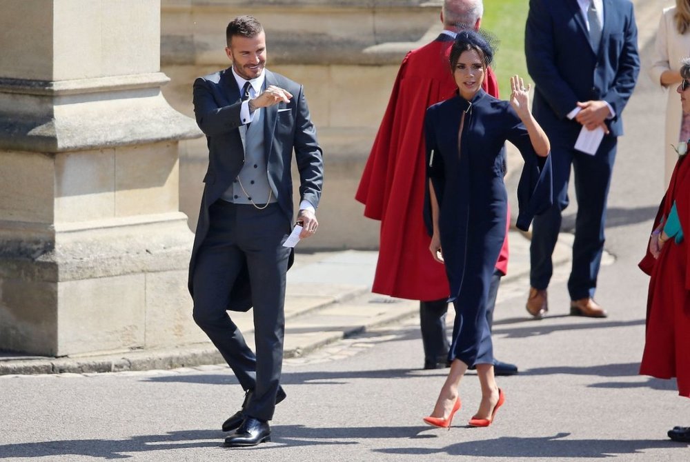 44-летняя Виктория Бекхэм, дизайнер и жена футболист Дэвида Бекхэма, вопреки негласным правилам не надевать темное, пришла на свадьбу в черном наряде и красных туфлях. Источник фото: celebeyes.com