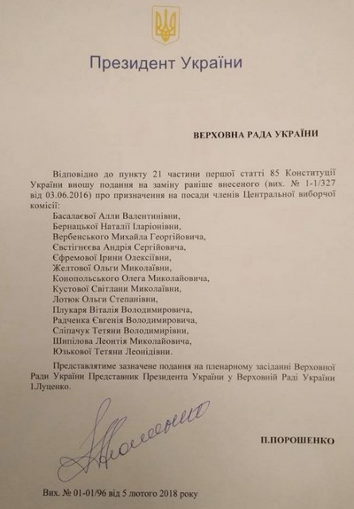 Представитель президента в парламенте Ирина Луценко, в свою очередь, отмечает, что голосование за избрание новых членов Центральной избирательной комиссии будет происходить по количеству набранных голосов каждым из кандидатов.