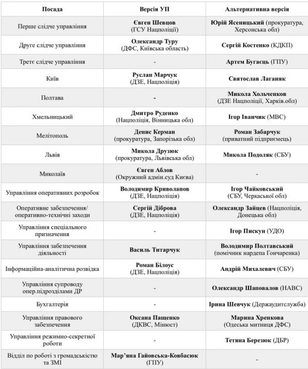 Два варианта списка фаворитов от власти на руководящие должности в Госбюро расследований, источник фото: rpr.org.ua