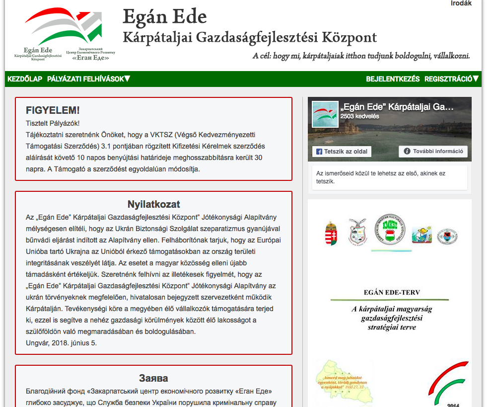 СБУ возбудила дело о сепаратизме против венгерского правительственного фонда "Эган Эде", который выдает кредиты местным предпринимателям венгерского происхождения и уже выделил под проекты закарпатцев около 100 млн евро. В спецслужбе подозревают, что якобы под видом кредитов бизнесменам венгры покупают лояльность местного бизнеса и финансируют активистов, которые готовят отделение области от Украины.