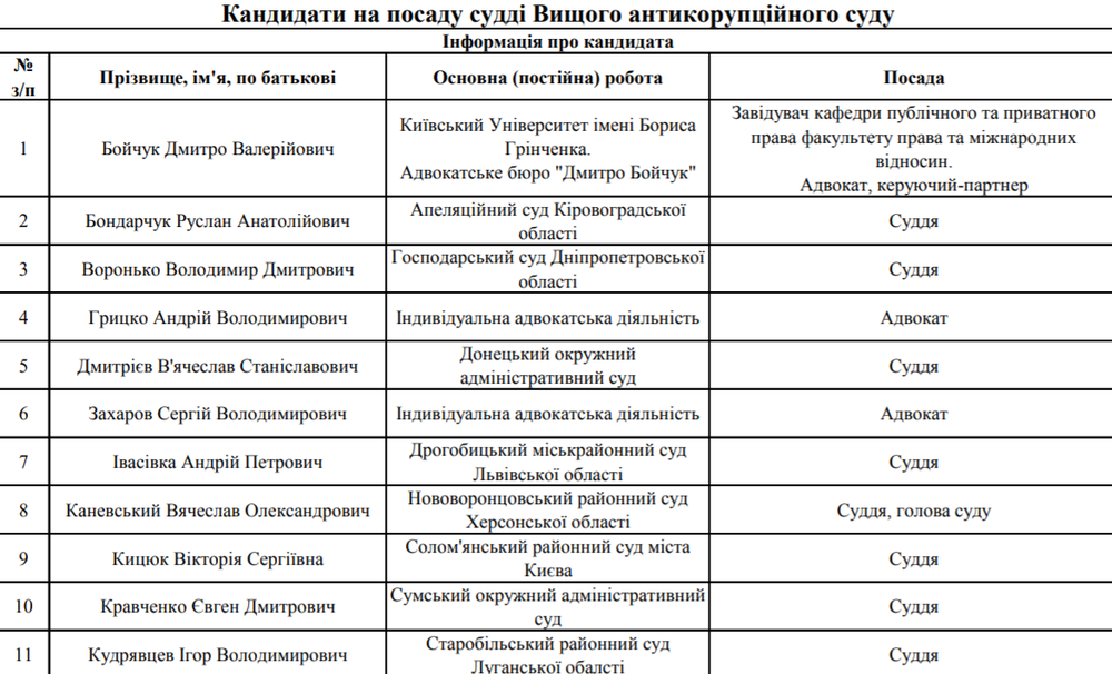 Далее началась бюрократическая рутина по утверждению штатной численности, и наконец, в первых числах августа объявлен сам конкурс в ВАКС. Им предусматривается принятие заявок от желающих, соответствующих квалификационным требованиям, вплоть до 14 сентября. Всего идет набор 27 судей Высшего антикоррупционного суда и 12 судей Апелляционной палаты.