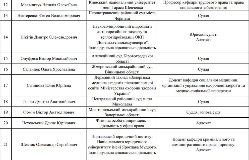 Так, еще 24 июля на сайте ВККСУ была запущена система "предварительных заявок" для оценки вероятного количества конкурсантов. За неделю ее работы о своем намерении принять участи в отборе выразило 782 человека. Среди них преобладали адвокаты (41%) и действующие судьи (37%), но также наличествовали ученые и кандидаты с так называемым "совокупным стажем".