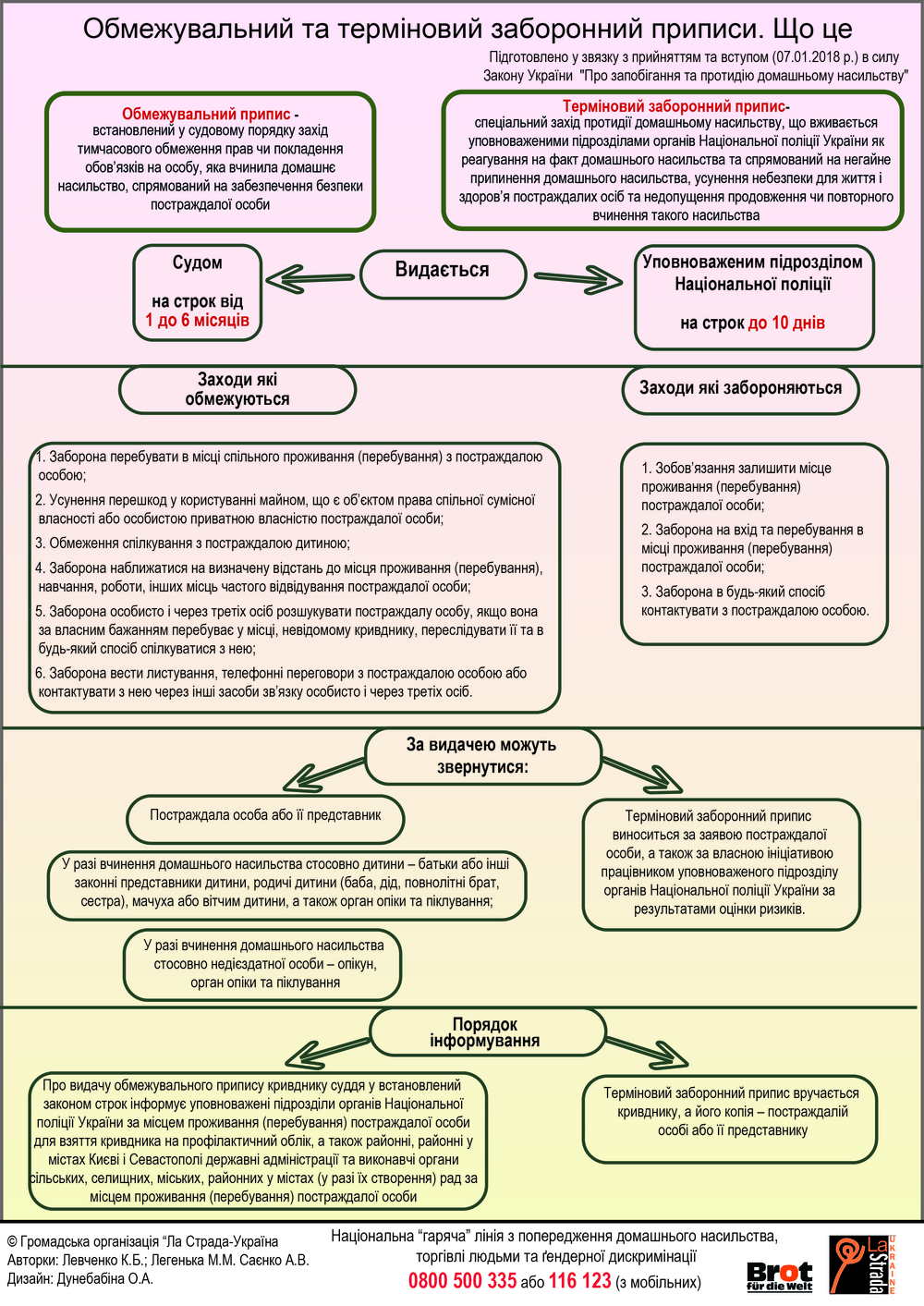 Добавим, что после "выселения" агрессор обязан в течение суток уведомить полицию о своем местонахождении и не приближаться к пострадавшему на срок действия предписания (от одних суток до десяти дней). За нарушение защитного предписания обидчику грозит административная (штраф от 170 до 340 грн), а с 11 января 2018 года - уголовная ответственность.