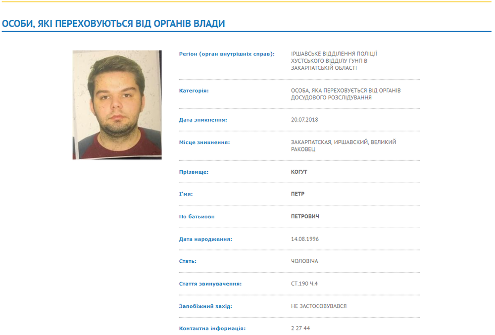 Как следует из хронологии расследования его "украинского дела", 16 июля ему было составлено уведомление о подозрении в мошенничестве в особо крупных размерах (ч.4 ст.190 УК Украины), но вручено Петру оно не было. В настоящее время расследование уголовного производства, связанного с "кидком" закарпатских криптоинвесторов, остановлено в связи с розыском Когута.