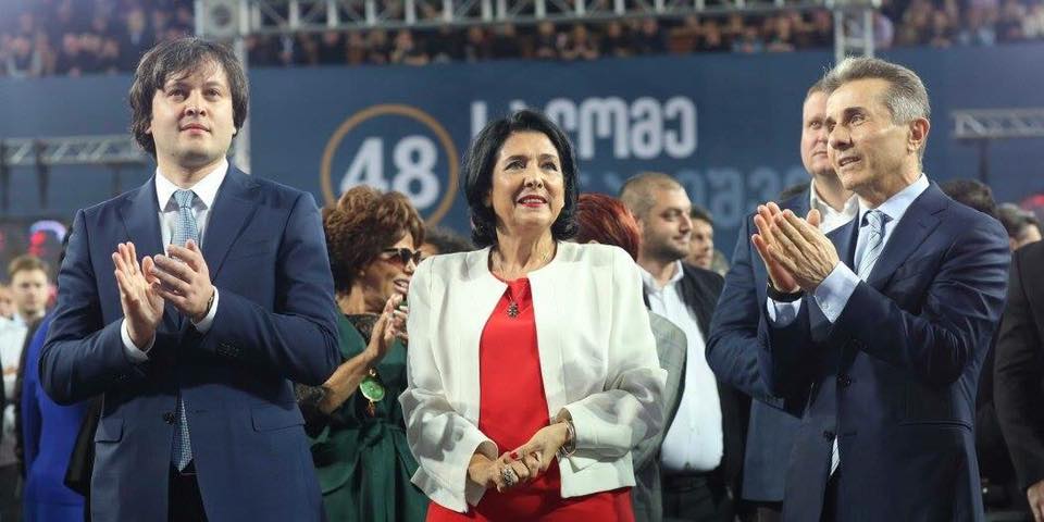 Уроженку Франции, экс-министра Зурабишвили поддерживает миллиардер и лидер правящей партии Иванишвили (справа). Фото: Facebook Светланы Джикирбы