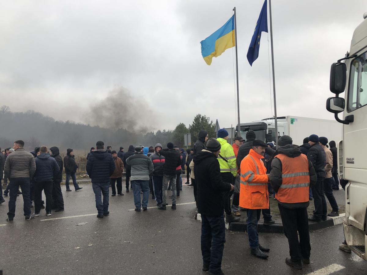 В пункте пропуска Рака-Русская дальнобойщики ответили протестом на протест - перекрыли путь к границе "евробляхерам".