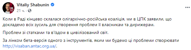 А вчера глава "Центра" Виталий Шабунин заявил, что "в Раде сложилась олигархически-российская коалиция". Поэтому "мы в ЦПК заявили, что приложим все усилия для создания проблем ее владельцам и дирижеру. Проблем с доходами и въездом в цивилизованный мир", - заявил активист, по сути дублируя риторику евродепутатов и угрожая санкциями.