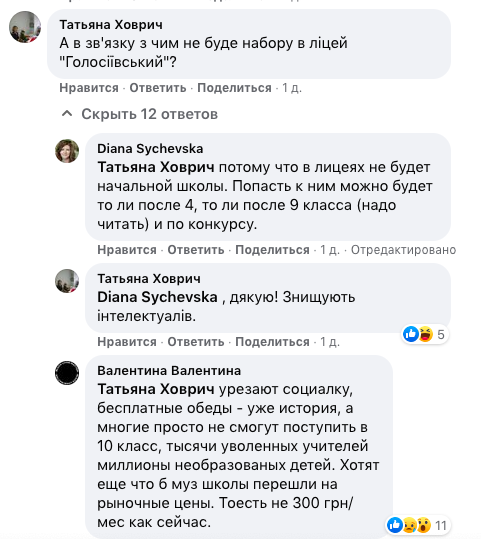 Приведем также цитату из комментария нардепа Сергея Колебошина, который состоит в комитете по образованию Верховной Рады: "Понятно желание каждой громады самой решать, нужен лицей или нет. Но предоставит ли условная "любая громада" соответствующее качество образования в старшей школе (не путать с обычной школой)?"