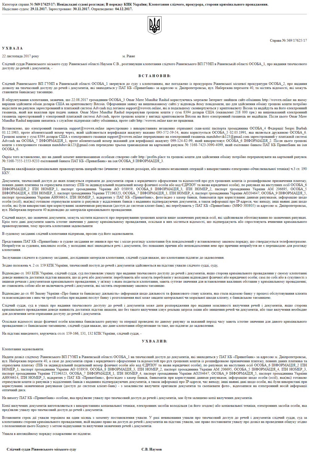 Именно этим желанием можно объяснить обилие в реестре судебных решений запросов в суды от полиции и СБУ на разрешения о проведении обысков и доступе к фермам биткоинов.