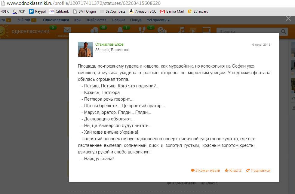 Известно, что ранее Станислав Станиславович работал в посольстве Украины в США. Не исключено, что именно эту его двухлетнюю командировку в СБУ и называют периодом, когда переводчика якобы и завербовали сотрудники ФСБ. Впрочем, возможен и другой вариант: согласно биографии Ежова помимо Америки он некоторое время жил в Словении.
