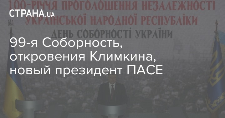 Вчера Украина отметила очередной, 99-й День cоборности. Точнее, она отмечала сразу две даты в один день – 100-летие Четвертого Универсала Центральной Рады и 99-летие объединения Украинской Народной Республики с Западно-Украинской Народной Республикой. Однако о круглой юбилейной дате вспомнил только Порошенко в торжественной речи, да и то мимоходом. Ведь праздник-то официально называется День соборности – то есть единства.