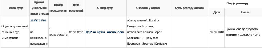 8 ноября 2016 года следствие сообщило о подозрении бойцу "Азова", ранее не судимому 20-летнему уроженцу Чернигова Владиславу Шатило. Он служил санитаром 2-го отделения взвода разведки специального назначения 1-го батальона оперативного назначения отдельного отряда специального назначения "Азов".