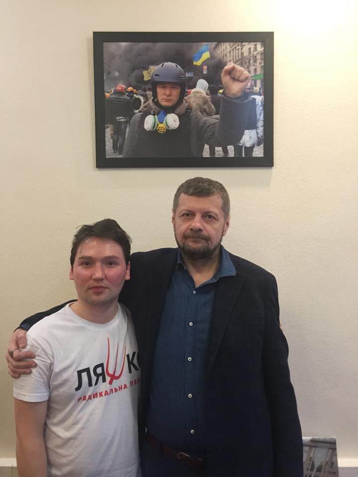 Александр Богачев и Игорь Мосийчук позируют на фоне портрета Олега Ляшко, источник фото: facebook.com/igor.mosijcuk