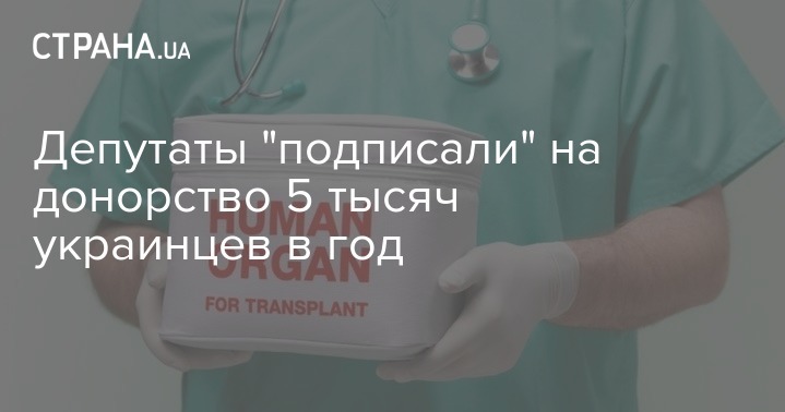 "Принятие закона позволит спасти жизни более 5 тыс, украинцев, которые ежегодно нуждаются в трансплантации (2,5 тыс. - пересадки почек, 1,5 тыс. - печени, 1 тыс. -- сердца, 300 - костного мозга). Все потребности этих людей в течение двух лет будут решены", - заверила глава парламентского комитета по вопросам здравоохранения и одна из соавторов законопроекта нардеп Ольга Богомолец, заранее "подписав" на донорство 5 тыс. еще живых украинцев.