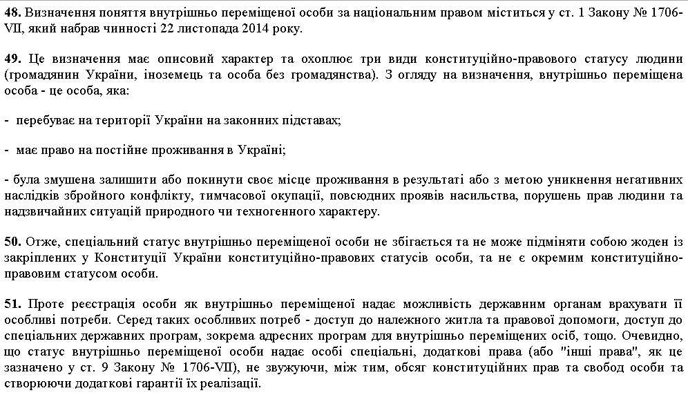 Такой подход, по мнению Верховного суда, можно распространить не только на граждан, которые выехали на постоянное местожительство в другие страны, а также и на ВПЛ, которые имеют постоянное местожительство на неподконтрольной правительству Украины территории.
