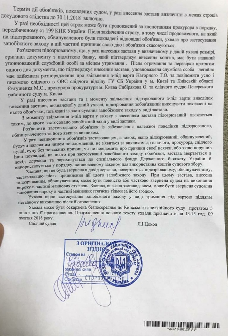 С их подачи сначала стала общеизвестной причина отсутствия Тимофея на связи. Приятели бизнесмена указали - он находится в киевском СИЗО. А в сети было обнародовано решение суда, согласно которому Нагорный был помещен под арест.