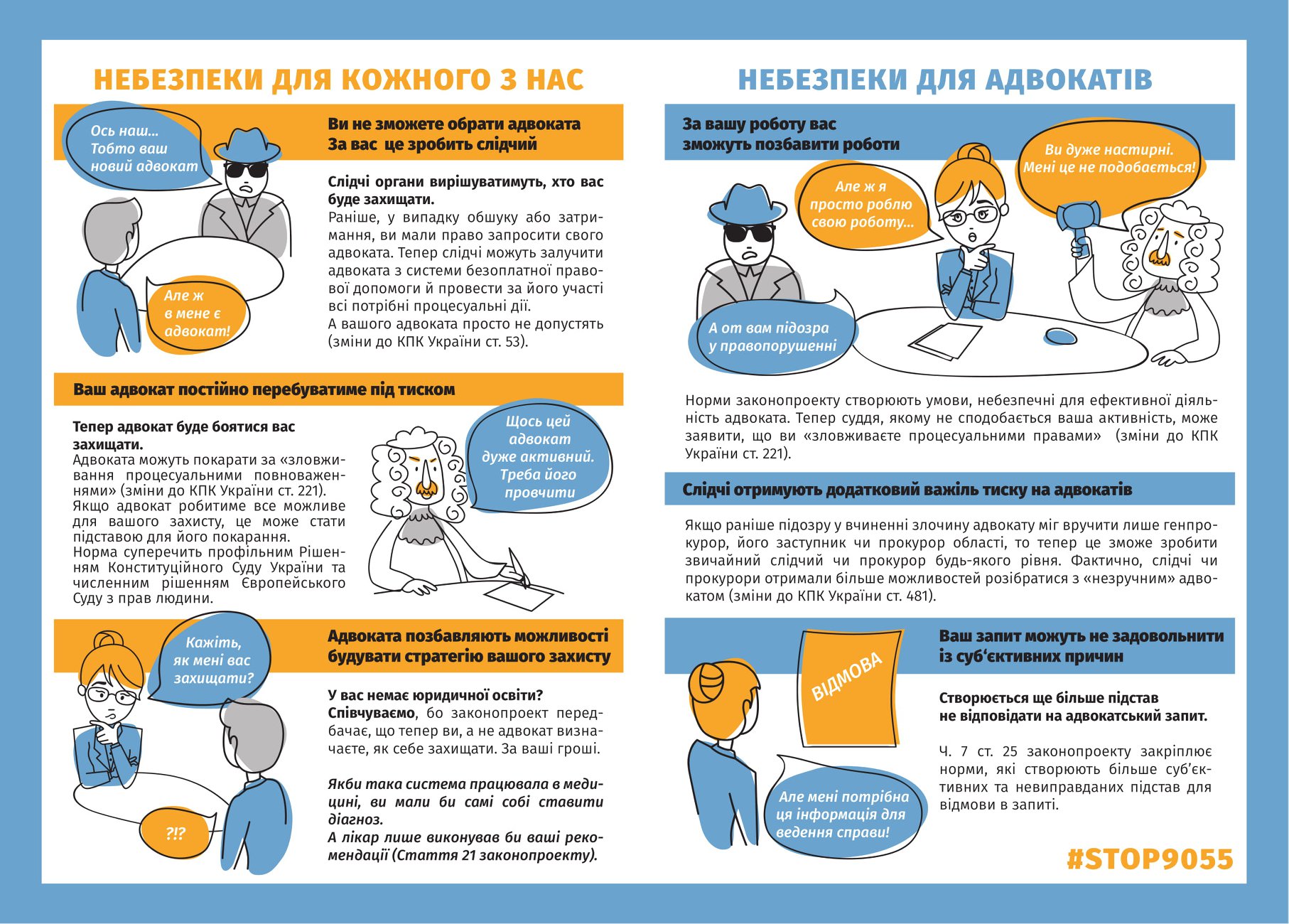 8 октября около ста адвокатов Украины на своих страницах в соцсетях опубликовали снятые ими видео с хэштегом #stop9055, выступив против принятия внесенного в парламент законопроекта "Об адвокатуре и адвокатской деятельности".