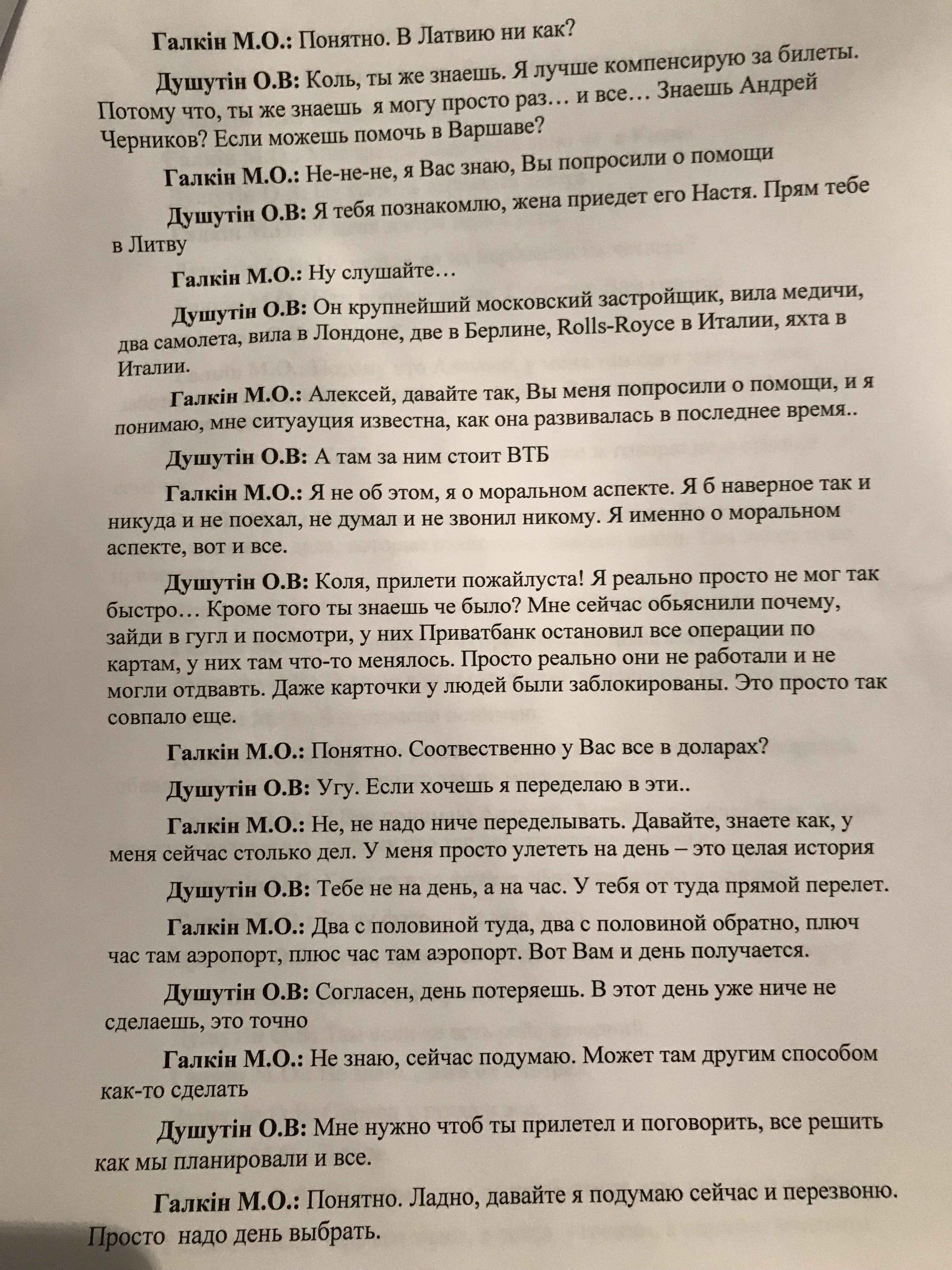 Расшифровка телефонных бесед между адвокатом Галкиным и Алексеем Душутиным, источник фото: "Страна"