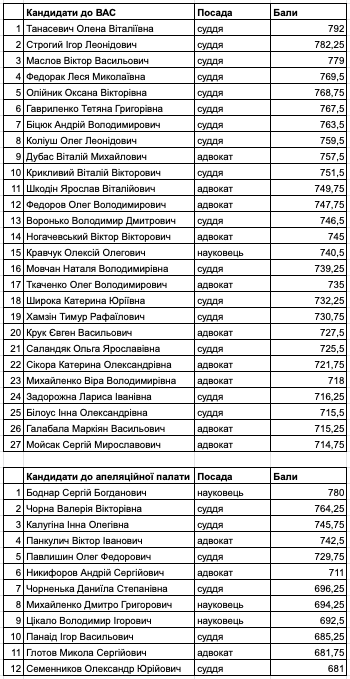 Тем временем, в обнародованный ВККСУ рейтинг первой инстанции Высшего антикоррупционного суда вошло 27 победителей конкурса, 40% из которых имеют опыт работы адвокатами и учеными, а 60% - судьями. Что же касается дюжины вакансий Апелляционной палаты ВАКС, то викторию здесь праздновали на паритетных началах судьи с адвокатами/учеными.