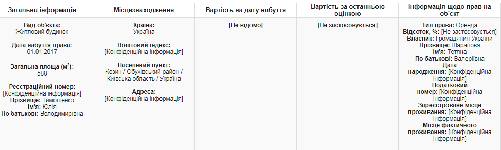 И, наконец, еще несколько небольших помещений записаны также на дочь Евгению и на двоюродную сестру Юлии Тимошенко Татьяну Шарапову. Последней, напомним, принадлежит дом в Козине, который "арендует" Юлия Тимошенко: