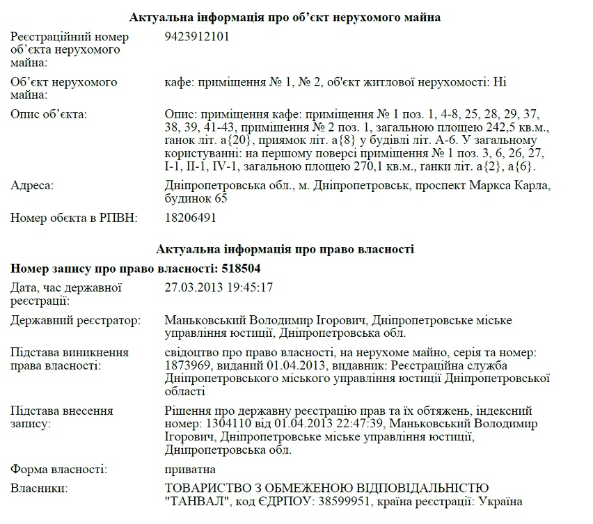 В этом же здании площадью 270 кв м. под кафе и места общего пользования записаны на ООО "Танвал", собственником которого является Валерий Ульяхин – супруг Антонины Ульяхиной, тетки Юлии Тимошенко: