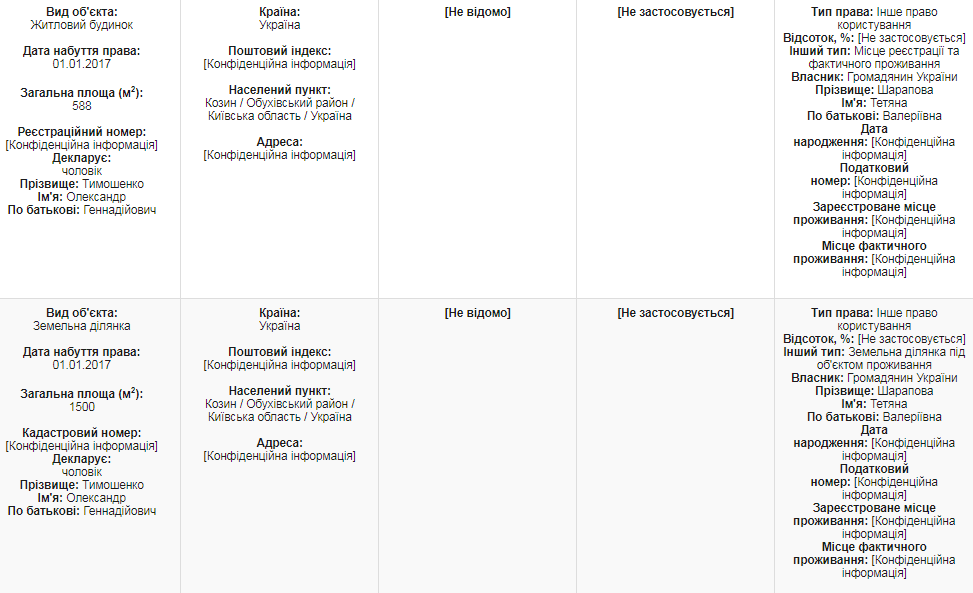 Еще на тетю с ее мужем записаны пять участков в Киеве площадью 46 соток, три в Днепре в 21,9 сотки, и еще два в Козине – возле дома, в котором живет Юлия Тимошенко, о которых мы уже упоминали.