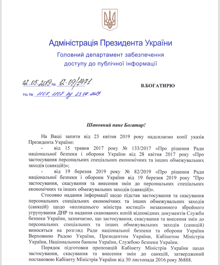 Его коллега Владимир Богатырь пошел дальше: он запросил на Банковой, в СБУ и у Совета нацбезопасности и обороны информацию о причинах, по которым спустя три года причисления Писаренко к "пособникам террористов" власти по-тихому "простили" его. Но вразумительного ответа так и не получил: аппарат СНБО уведомил юриста, что эти документы носят гриф "для служебного пользования".