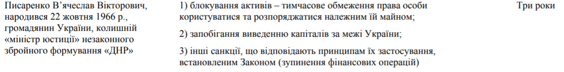 Профайл Писаренко в "санкционных списках" СНБО авторства 2016-2018 годов, источник фото: rnbo.gov.ua