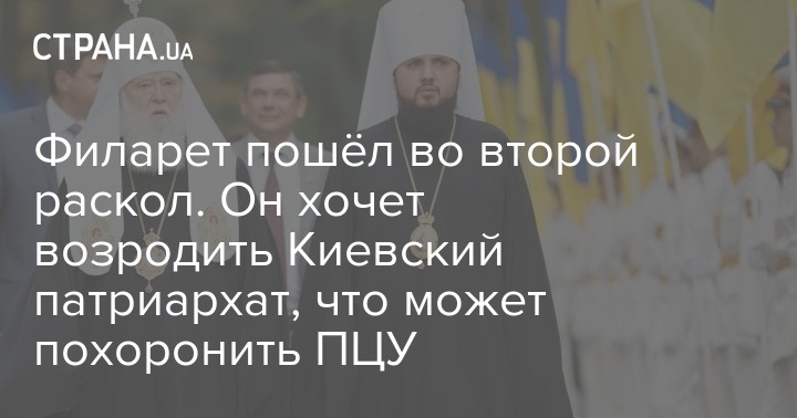 То есть, теперь, раскольником Филарета называют уже архиереи ПЦУ. И если их слова подтвердятся, то для самого Филарета это будет уже второй раскол - в 1992 году с частью клира и мирян он покинул Русскую православную церковь, образовав Украинскую православную церковь Киевского патриархата, за что был отлучен из церкви и предан анафеме.