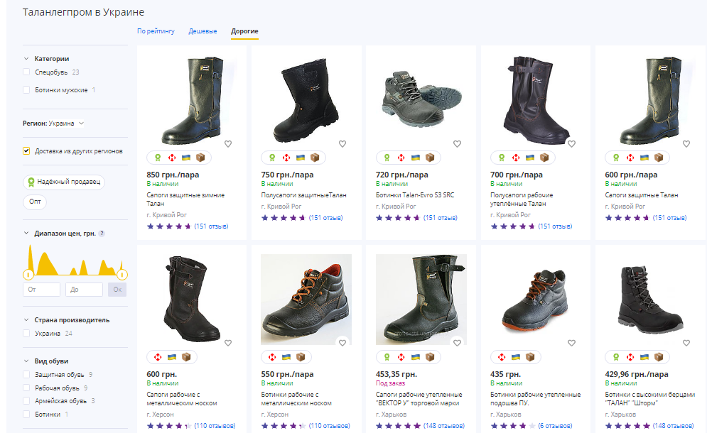 Интересно, что в интернете самая дорогая обувь "Таланлегпрома" продается в розницу всего за 850 гривен. Это зимние защитные сапоги. Другие виды обуви от этого производителя стоят еще дешевле: