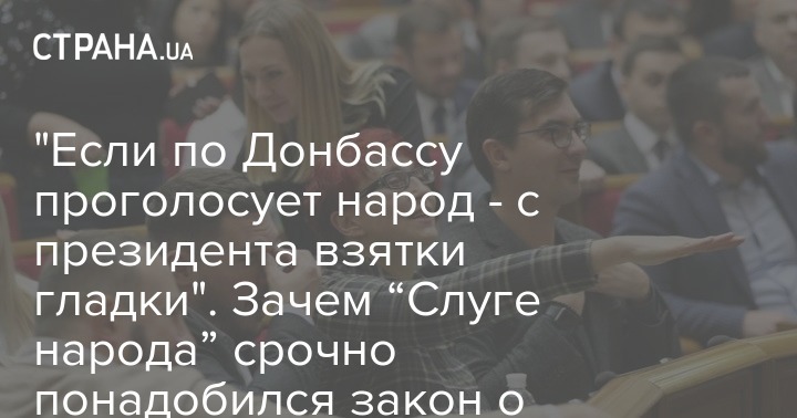 По информации “Страны”, этот законопроект войдет в пакет законодательных инициатив Офиса президента (ОП) Владимира Зеленского или пропрезидентской партии “Слуга народа” (СН), которые будут включать также проект, дополняющий норму Конституции (в процессе принятия) о законодательной инициативе народа Украины, и проект об отзыве депутатов всех уровней.