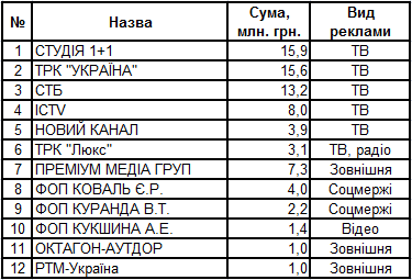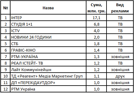 Наибольшие суммы из своего избирательного фонда партия Тимошенко потратила на телерекламу – 74,4 млн. Больше всех получил канал "1+1" – 20,5 млн. А 9,1 млн ушло на внешнюю рекламу через фирму "РТМ-Украина":