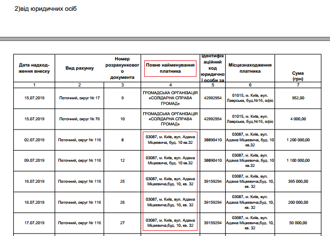 В партийном отчете "порошенковцы", возможно, хотели скрыть этот факт, и вместо названий фирм почему-то указали их адреса: