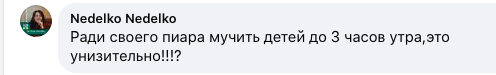 "А кто в итоге ответит за то, что маленьких детей девять часов подряд держали в закрытом помещении во время пандемии? И за то, что работали они до трех ночи", – интересуются пользователи.