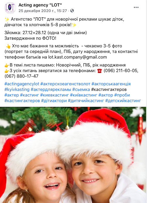 Все началось 25 декабря, когда на официальной странице модельного агентства LOT появился анонс с приглашением на съемки рождественской рекламы.