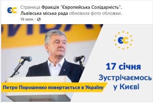 На страницах партячеек и фракций в соцсетях появились объявления вроде опубликованного фракцией ЕС во Львовском облсовете: “17 января лидер оппозиции Петр Порошенко возвращается в Украину! И мы идем его встречать. Речь идет не только о защите Порошенко, но и о защите демократии в Украине! Партия “Европейская солидарность” готова! Порох есть, дадим огня!”.
