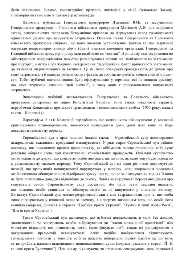 "Подобные заявления и действия руководителей прокуратуры противоречат не только Конституции Украины, а и нивелируют гарантии, предусмотренные Европейской конвенцией по правам человека", - считают Петраковский и Симоненко.