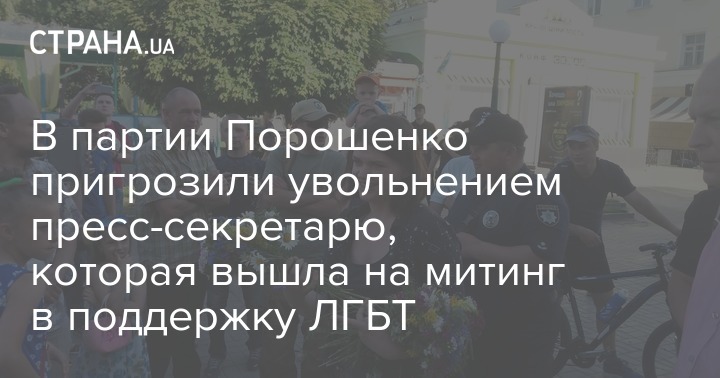 В Сумской областной организации партии "Блок Петра Порошенко "Солидарность" пресс-секретарю Ольге Панфиловой в грубой форме пригрозили увольнением за мономитинг в поддержку Киевпрайда.