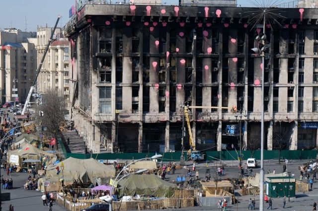 Обгоревший Дом Профсоюзов во время Майдана 2014 года. Фото: АиФ-Украина