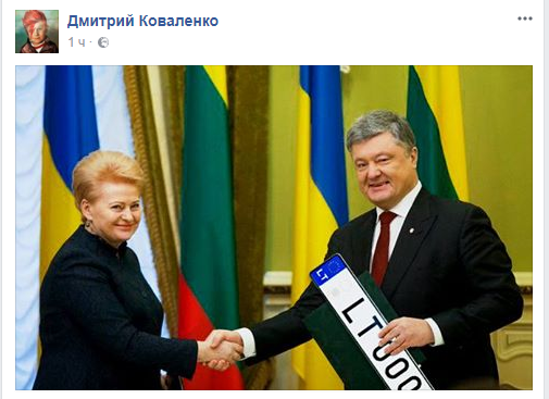 А журналист и блогер Дмитрий Коваленко посвятил ситуации забавный мем с участием президента Украины Петра Порошенко и Литвы Далей Грибаускайте.