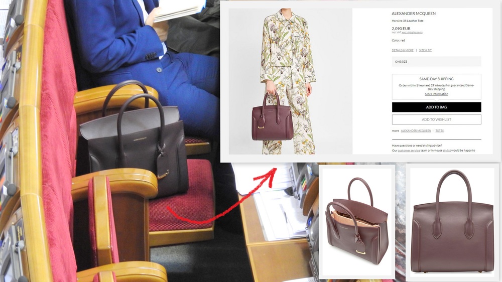 Как оказалось, близкая подруга народного депутата Антона Геращенко и министра внутренних дел Арсена Авакова носит сумку дома мод Alexander McQueen, который основал английский дизайнер Александр Маккуин. Напомним, что сам модельер, который был открытым геем - повесился в гардеробной своего дома 7 лет.