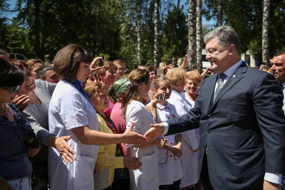 Порошенко жмет руку работнице медучреждения, фото: facebook.comf