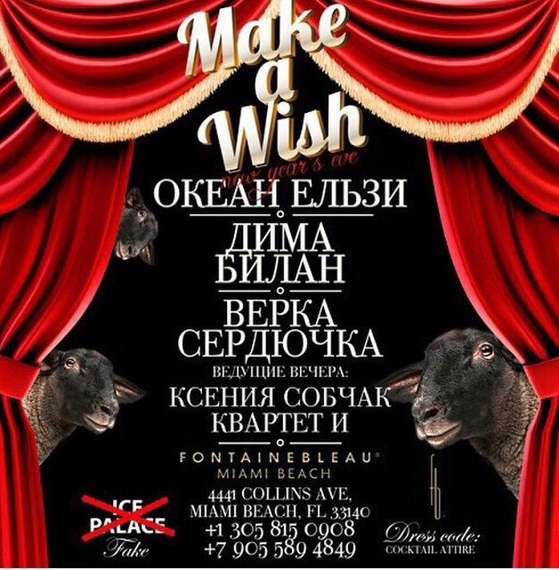 Но в прошлом Вакарчук был открыт к различным предложениям. Например, 2015 год Святослав встречал в Майами (США). Тогда в отеле Fontainebleau Miami Beach грандиозное торжество устраивал известный московский ресторатор Илья Лихтенфельд. Для гостей арендовали бальный зал гостиницы, где выступала украинско-российская солянка: группа "Океан Эльзы" (гонорар тогда за вечер составил $80 000), Верка Сердючка ($30 000) и Дима Билан ($30 000).