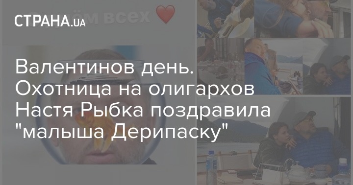 Охотница на богатых мужчин Настя Рыбка, которая фигурирует в секс-скандале с олигархом Олегом Дерипаской, выложила тематическую валентинку: яхта, а ведь именно на ней она развлекалась с Олегом, золотая рыбка (скорее всего, подразумевается Настя) и мужчина, очень похожий на Дерипаску.