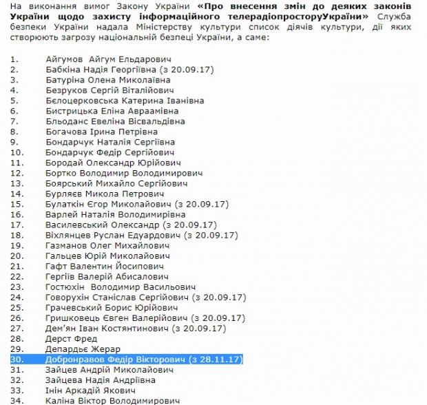 29 ноября 2017 года Министерство культуры внесло российского актера в перечень лиц, которые угрожают национальной безопасности Украины.