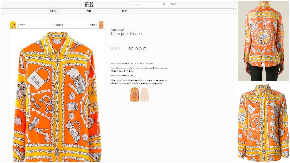 Как оказалось, на Росите шелковая блуза от итальянского бренда Moschino. Разноцветная кофточка с принтом костей – из коллекции Cheap and Chic – мода с элементами юмора.